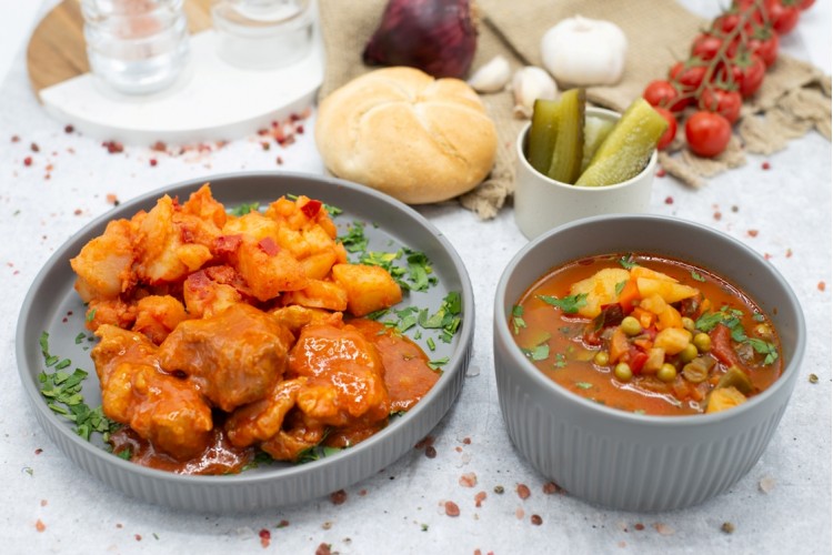 Meniu/c.legume/friptura porc/c.taranesti/s.castraveti/chifla
